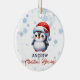Personalisierte Christliche Ornamente, niedlicher Pinguin mit Weihnachtsmütze, Bibelzitat auf der Rückseite und Schneehand. Luke 2:14 "Ruhm Gott im höchsten, und auf Erden Frieden unter denen, mit denen er zufrieden ist!"