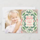 Eine stilvolle Fotokarte mit Kiefernbäumen und Wirbel in Rot, Grün, Bräune und Creme.