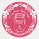 Rustikales Land Weihnachts-Segen Aufkleber mit einem Maurerkrug mit der Aufschrift Peace, Liebe und joy. Weihnachts-Segnungen sind rund um die Decke des Mauerkirsches gebogen. Das gesamte Design ist mit einem modernen, heiligen Kranz gerahmt. Alle Texte und Grafiken sind weiß. Sie sehen wunderbar aus, gegen ein leuchtend rosa Rot. Fügen Sie Ihren Weihnachtskarten-Umschlägen oder Geschenkverpackungen eine besondere Touch hinzu. Der gesamte Text kann bearbeitet werden, um eigene Weihnachtssegmente einzuschließen.