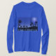 Langärmeliges lässiges Shirt für Männer mit Crew Nacken wird in Blau gezeigt. Die Grafik zeigt die Weisen, die die Heilige Geburt im Manager besuchen. Text liest frohe Weihnachten. Anpassen oder kaufen, wie es ist.