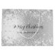 Ein Imitat silber aussehender Hintergrund mit Imitaten silberne Konfetti, Glitzern. Personalisieren Sie Ihren Familiennamen und fügen Sie ihn hinzu. Text: Frohe Weihnachten.