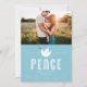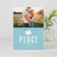 Diese Single Foto-Ferienkarte bietet Platz für ein Foto oben. Unter dem Foto ist ein Beispiel für eine Taube über dem Wort Frieden. Es hat auch Platz für einen Gruß, Ihren Namen und das Jahr.