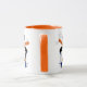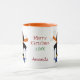 Diese niedliche Tasse besticht durch einen bezaubernden Schneeschuhpinguin und einen eigenen personalisierten Text. Der Pinguin ist in einem orangefarbenen Schal und einer blauen Brille gekleidet und fährt auf seinem Ski. Einige Schneeflocken treiben um ihn herum. Das Bild wird zweimal wiederholt. Dazwischen befinden sich drei Textfelder für Ihren benutzerdefinierten Text. Feierlich und hell!