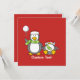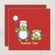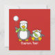 Ein kleiner Pinguin-Cartoon mit Schneeball und einem ohnmächtigen. Beide tragen grüne Schals und Weihnachtsmannmützen.