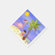 Weihnachts Sommer Flamingo Beach Niedlich Holidays Paper Party Napkins bietet eine niedliche Weihnachtsstrand-Szene mit einem festlichen tropischen Flamingo mit einer Weihnachtsmannmütze, Weihnachtsbeleuchtung auf einer Palme und sandigem Schneemann am Strand. Ideal für alle, die ein tropisches oder sommerliches Weihnachten feiern. Entworfen von ©Evco Holidays www.zazzle.com/store/evcoholidays