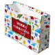 Ein niedliches Weihnachtsbild, das Wellen, Weihnachtsbaum, Weihnachtsgeschenke, Weihnachtslichter, Sonne, Ananas, Sommersmoothies und Weihnachtsmannmütze zeigt. Ein ideales Weihnachtsdesign, ideal für Weihnachten im Sommer oder Weihnachten an der Küste.