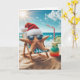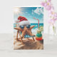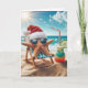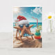 Ein Seestern mit Weihnachtsmannmütze und Sonnenbrille entspannt sich auf einem Strandstuhl am Ozean mit einem Cocktail. Text ist bearbeitbar.