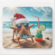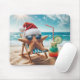 Ein Seestern mit Weihnachtsmannmütze und Sonnenbrille entspannt sich auf einem Strandstuhl am Ozean mit einem Cocktail