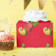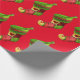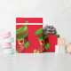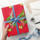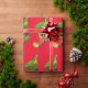 Ein rotes Weihnachtswappenpapier mit kunstvollen Strümpfen in farbenfrohen Mustern.