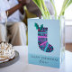 Ein lustiger gemusterter Weihnachtsweihnachtssang in Rosa und aquamarin mit einem Haufen Heiliger. Das Design ist personalisiert mit einem Namen und Gruß, die beide geändert werden können. Das Design befindet sich auf einem hellblauen Hintergrund auf der Vorder- und Rückseite und das kann auch geändert werden.