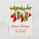 Die Grüße der Saison Personalisierten Weihnachts-Strümpfe Familienurlaub-Karte. Feiern Sie Ihren Urlaub mit dieser personalisierten Weihnachtskarte, die ein festliches Design von hängenden Strümpfen, Süßspeisen, Ziergegenständen und heiligen Blätter bietet. Das fröhliche rote und grüne Kunstwerk wird mit einer klassischen "Grüße der Jahreszeit"-Nachricht in elegantem Schriftsatz gepaart. Passen Sie Ihren Familiennamen, Ihren Gruß und Ihre Rücksendeadresse für eine herzliche und nachdenkliche Urlaubskarte an. Ein perfekter Weg, Weihnachtsfreude an Freunde, Familie und Lieben in dieser Saison zu verbreiten.