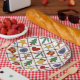 Liebliche Weihnachtsfeier Party Teller mit Lebkuchen Mann, Weihnachtsbaum, Heilige & Beeren, Stern, Herz, Glocke, Bauble und Geschenk zeitgenössische Symbole. Wunderbar für Ihre Weihnachtslieder. Design Hand für Sie gezeichnet, wie immer!