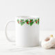 Keramik Kaffee/Tee/Kakao-Tasse wird mit einem festlichen Weihnachtsfeiertagsausschnitt gezeigt. Passen Sie dieses Objekt an oder kaufen Sie, wie es ist.
