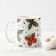 Hier ist eine Tasse zu Weihnachten. Die Kombination aus Rot und Grün erinnert an Weihnachten.
