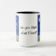 Tasse, die ein handgemaltes Aquarellbild von Bollen und Sternen darstellt. Worte lauten "Hatst du, was ich höre?"