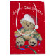 Weihnachts-Teddy-Bär in getrübten Lichtern Mittlere Geschenktüte