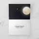 Weißer Teddybär im Fenster, der auf Vollmond starrt, mit dem Weihnachtsmann in Schlitten und Rentieren.