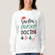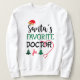 Ein fröhliches Sweatshirt-Design zeigt den Satz des Lieblingsärzts des Weihnachtsmannes, der mit festlichen Elementen geschmückt ist. Ideal für Ärzte, die die Feriensaison mit Spaß und Stil feiern.