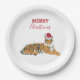 Weihnachts-Tiger Funny Animal mit Weihnachtsmannmü Pappteller
