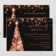 Elegante & festliche Xmas Tree Rose Gold Wedding Details/Information Card Vorlage mit Party Adresse und Anleitung, Glitzer Lichter Weihnachtsbaum und moderne Typografie Skript.