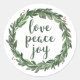 Weihnachts- und Neujahrskranz. Liebe, Frieden, Fre Runder Aufkleber
