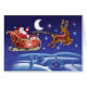 Mondlicht Weihnachtsmann und Schlittenweihnachtskarte. Es ist Heiligabend und der Weihnachtsmann macht sich den Weg über den sonnigen, schneebedeckten Himmel. Ein ruhiges, friedliches Weihnachtsdesign. Sie können den Gruß innerhalb der Karte ändern, um Ihre eigene saisonale Nachricht zu machen.