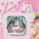Leckereien mit Stil servieren wir mit Party-Tellern, die ein Einhorn umgeben von Weihnachtsbäumen und in Rosa- und Türkistönen präsentieren. Ideal für Party, festliche Ansammlungen oder Feierlichkeiten zum Thema Einhorn.