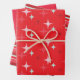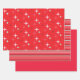 Das Set von 3 Packplatten sind individuell gestaltet. Das erste Blatt weist ein Weihnachtssternmuster mit rotem Hintergrund auf. Die Sterne sind rosa, rot, blau und Rose. Das zweite Blatt weist ein Streifen-Muster aus den gleichen Farben auf. Das Endblatt ist massiv rot. Dieses Set gibt Ihnen einen koordinierten Blick unter den Baum.