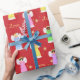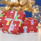 Fünf kleine Engel singen von Ruhe und Liebe vor einem Vintagen roten Hintergrund mit goldglänzenden Sternen.