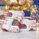 Feiern Sie die Ferien mit diesem Retro inspirierten Packpapier. Dieses Design umfasst einen Vintagen roten LKW mit Geschenken und Spielzeug, darunter ein niedlicher Teddybär und eine Sprinklerei mit aquablauen Schneeflocken. Über dem LKW in roter Schrift steht: "Frohe Weihnachten!" Wrap deine Geschenke im Stil! Entworfen von Künstlern © Tim Coffey und Susan Coffey