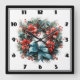 Weihnachts Wasserfarbenreath mit Holly Quadratische Wanduhr