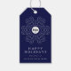 Lassen Sie sich von diesem individuellen Geschenk-Tag-Template für Ihren Geschäftsaufenthalt mit einem marinen Hintergrund, elegantem Snowflake-Detail in Weiß und Ihrem Firmenlogo in der Mitte verzaubern. Die Vorderseite lautet "Happy Holidays von uns allen bei [Firmenname]", während die Rückseite Platz für eine benutzerdefinierte Nachricht und einen scannbaren QR-Code beinhaltet - ideal, um Kunden, Lieferanten und Mitarbeitern eine persönliche Touch hinzuzufügen.