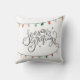 Moderne, einfache und fröhliche Grüße Schrift der Saison, die mit leuchtenden und farbenfrohen Weihnachtsbändern geschmückt ist. Dieses Kissen wird jedem Innendesign des Urlaubshotels Wärme verleihen.