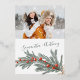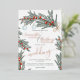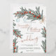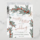Zeit, um Ihr winterliches Hochzeitsthema mit diesem handbemalten grünen Kiefernzweig, Rotmistletoe, Weihnachtsschmuck mit einer modernen coolen Schrift Schriftart Typografie zu feiern. Fügen Sie Ihr Foto auf der Rückseite mit den Namen des Paares hinzu oder entfernen Sie es. Mit echter Rose Goldfolie.