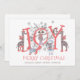 Whimsical einzigartige illustrierte JOY Typografie Weihnachtsschlachttiere Weihnachtskarte, Eine einzigartige Collage von bemalten Wäldern und Safari Party Tiere. Rot, Blau und Grau auf Weiß. Niedlicher Typ und ein Besen von Keuchen. Machen Sie diesen Urlaub zu GÜNSTIGEN! Personalisieren Sie Ihre Namen.