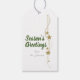 Der Weihnachtsfeiertag ist eine besondere Jahreszeit und Ihre Pakete rufen besondere Geschenkmarken an. Goldene Sterne kaskadieren die rechte Seite dieses Anhängers. Das Tag lautet "Frohe Festtage" und ist mit dem Namen des/der Geber(s) personalisiert. Die Rückseite ist eine solide grüne Farbe, die sich mit der Vorderseite koordiniert. Dieses einfache Design ist dazu gedacht, jedes Ihrer Urlaubspakete zu ergänzen.