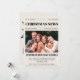 Mit dieser einzigartigen Weihnachtsfotokarte im Zeitungsstil, die wie eine festliche Titelseite direkt aus der Nordpol-Presse aussehen soll, können Sie Ihren Feiertag genießen. Mit einem kühlen Headline-Layout und Platz für Ihr Lieblings-Foto verbindet diese Karte Vintagen Charme mit moderner Personalisierung. Auf der Rückseite befindet sich eine wunderschöne WeihnachtsschmuckIllustration im Zeitungspapier, die Ihrer Urlaubsbotschaft eine skurrile Touch verleiht. Ideal, um saisonale Updates in einem kreativen Storybook-Format zu teilen, das sich von der Masse abhebt.