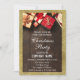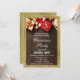Feierliche Weihnachtsfeiertagsgesellschaft Weihnachten Party Einladung mit funkelnd goldfarbenem Glitzer Glitzern-Rand, roten Geschenken mit Bögen und elegantem Weiß auf rustikalem dunkelbraunem Holz. Dies ist die perfekte Urlaubs-/Weihnachts-/Wintereinladung!