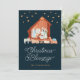 Eine religiöse Urlaubskarte mit einer Aquarellillustrierung der Krippe und der bearbeitbaren Überschrift "Weihnachts-Segnungen" im Schriftart der weißen Schrift. Personalisieren Sie Ihren Namen in Gelb auf der Vorderseite und Ihr Foto auf der Rückseite.