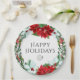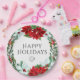 Holiday Party Modern Add Your Logo Weihnachts-Weihnachtsbuch Teller bietet ein schicke Urlaubsdesign von Aquarell Rot-Weiß Poinsettia Blume, heilig und mistletos in festlich rot, weiß und grün auf einem weißen Hintergrund. Der Text "Happy Holidays" ist in Kalligraphie-Schrift-Typografie geschrieben und mit dem Firmenlogo unten personalisiert. Ideal für Ihre Weihnachtsfeier. Bearbeiten Sie den Text einfach in den dafür vorgesehenen Textfeldern. Entworfen von ©Evco Holidays www.zazzle.com/store/evcoholidays