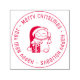 Ein Lächeln der weißen Katze in einem traditionellen Weihnachtshut mit einem großen Geschenk umhüllt wünscht allen ein frohes Weihnachtsfest! In ihrer links Pfote hält die Katze eine Glocke hoch mit einem Bogen. Bitte beachten Sie, dass Sie, wenn Sie Ihren eigenen Text eingeben, die Informationen unter Umständen anpassen müssen, indem Sie einige Zeichen hinzufügen oder löschen, um den Text korrekt anzupassen.