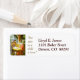 Dieses Retourenadressen-Label zeichnet sich durch ein Vintages Kunstbild der Christlichen Krippenlandschaft aus, komplett mit der Heiligen Familie und Tieren im Stall. In der Beilage steht in Gold: "Für uns ist ein Kind geboren." Einfach den Text anpassen.
