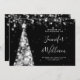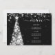 Elegante und festliche Weihnachtsschablone mit Party- und Menütext, Weihnachtsbaum und modernem Schriftzeichen aus Glitzer.