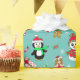 Weihnachts-Weihnachtspenguin, Schneemänner, Bonbonverpackung in grün, rot, schwarz, lila und aquamarin.