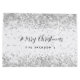 Ein stilvoller weißer Hintergrund mit Imitaten verziert silberne Konfetti, Glitzern. Personalisieren Sie Ihren Familiennamen und fügen Sie ihn hinzu. Text: Frohe Weihnachten.