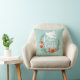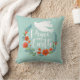 Ein elegantes Weihnachtskissen mit den Worten Weltfrieden in schönen Schriftzeichen. Ein Blumenkranz umgibt den Text mit einer hübschen weißen Taube auf einem aquamarinen Hintergrund. Entworfen für Sie von BlackBerry Boulevard.