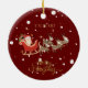 Dieses skurrile, rote Weihnachtsbaumdesign besticht durch eine KinderNutcracker-Szene mit einem Rockpferd, Drum-Set und einem Spielzeugsoldaten vorne mit einem Schlitten des Weihnachtsmanns und Imitate Gold-Folie Frohe Weihnachten auf der Rückseite. Diese luxuriösen Kinder personalisierte Weihnachtsbaumdekoration ist mit einem goldenen rustikalen Skript eigenen Kindernamen und frohe Weihnachtsbotschaft vervollständigt.