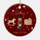 Dieses skurrile, rote Weihnachtsbaumdesign besticht durch eine KinderNutcracker-Szene, die mit einem Rockpferd, Drum-Set und einem Spielzeugsoldaten auf der Vorderseite mit Rockpferd und Imitate vervollständigt wird. Diese luxuriösen Kinder personalisierte Weihnachtsbaumdekoration ist mit einem goldenen rustikalen Skript eigenen Kindernamen und frohe Weihnachtsbotschaft vervollständigt.