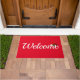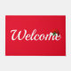 Die Begrüßungstür wird in der Weihnachtsmannmütze des Urlaubshotels gezeigt. Color Red Passen Sie diese Matte an oder kaufen Sie, wie es ist.