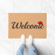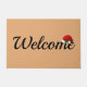 Die Begrüßungstür wird in der Weihnachtsmannmütze des Urlaubshotels gezeigt. Farbe Tan Passen Sie diese Matte an oder kaufen Sie, wie es ist.